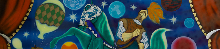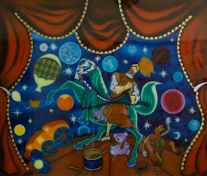 Malerei hin zu einem ganz persönlichen Surrealismus. Im Laufe dieser Entwicklung habe ich zu meiner heutigen, sehr komplexen Technik gefunden: ich verleihe dem Glas eine besondere Struktur und veredle meine Werke abschließend mit Blattgold. Heute male ich die Welt, die ich mir schon als Kind gewünscht habe: eine Welt voller Frieden und Gelassenheit, in der alle Menschen frei und gleich sind. Es ist mein Versuch, die Welt durch die Kunst zum Besseren zu verändern.